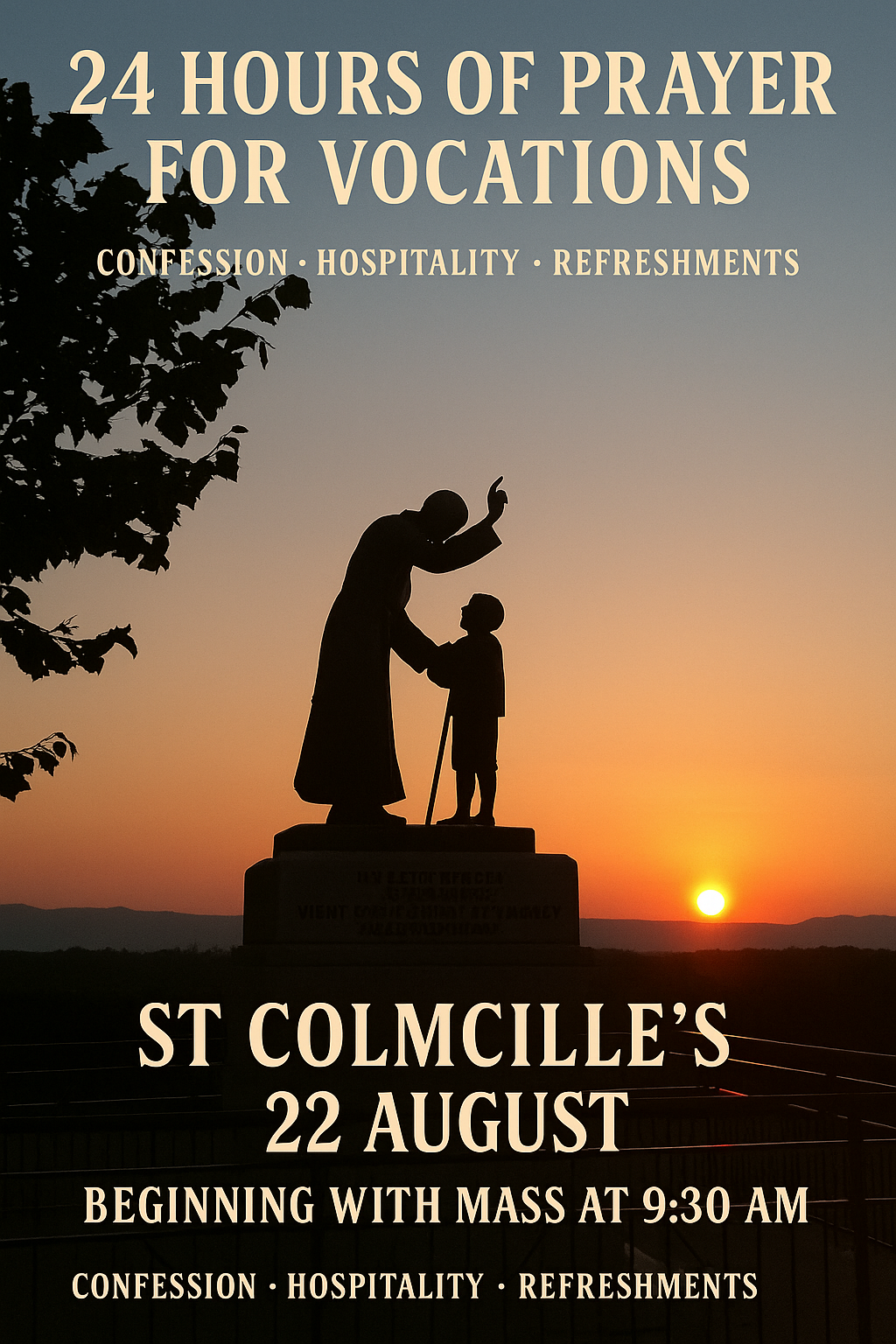 Come for 10 minutes or 10 hours — you’re so welcome. Join us at St Colmcille’s, Ballyhackamore on Thursday 22nd August as we pray for vocations to the diocesan priesthood. Begins with Mass at 9:30am • Adoration all day • Confession • Hospitality • Quiet welcome.