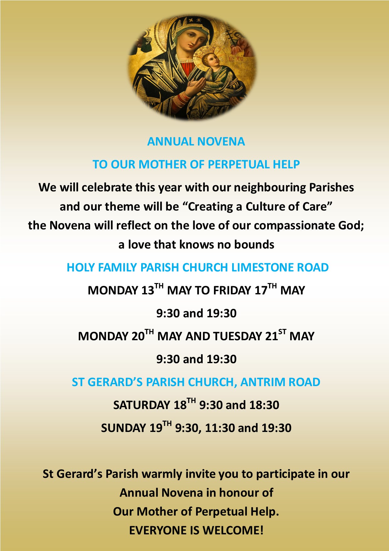 St Gerard’s Parish warmly invite you to participate in our Annual Novena in honour of
