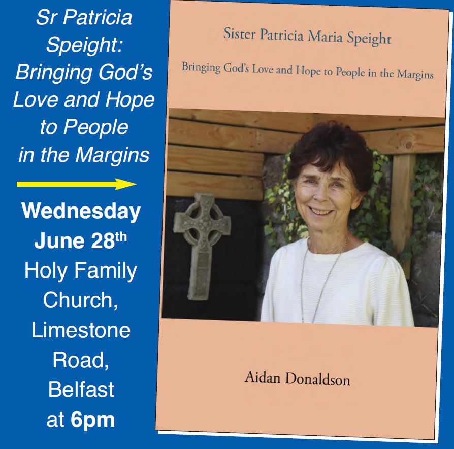 The publication of Sister Patricia Maria Speight: Bringing God’s Love and Hope to People in the Margins will be celebrated in Holy Family Church (Limestone Road, Belfast) on Wednesday 28 June at 6.00 pm. Keynote speaker: Bishop Donal McKeown.