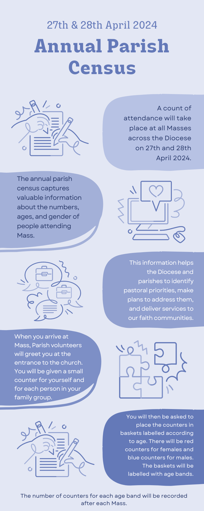 A count of attendance will take place at all Masses across the Diocese on 27th and 28th April 2024.